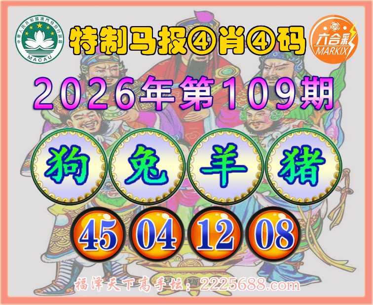 109期:『特制马报』 ✂️④肖④码✂️【狗兔羊猪】【45.04.12.08】开:00准