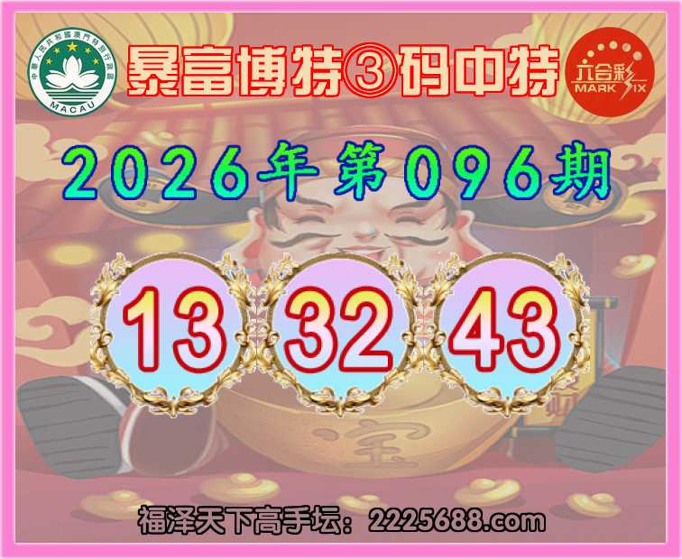 096期:【暴富博特】 👉③码中特👉【13.32.43】开:43