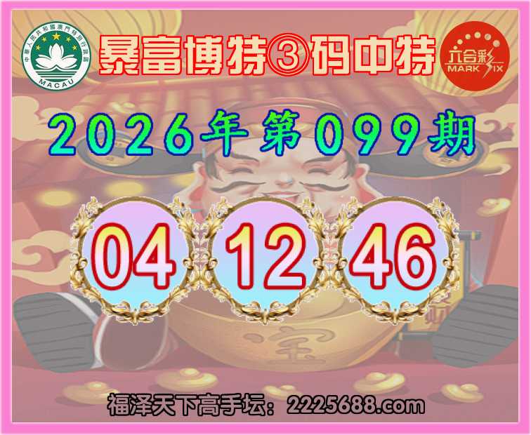 099期:【暴富博特】 👉③码中特👉【04.12.46】开:12