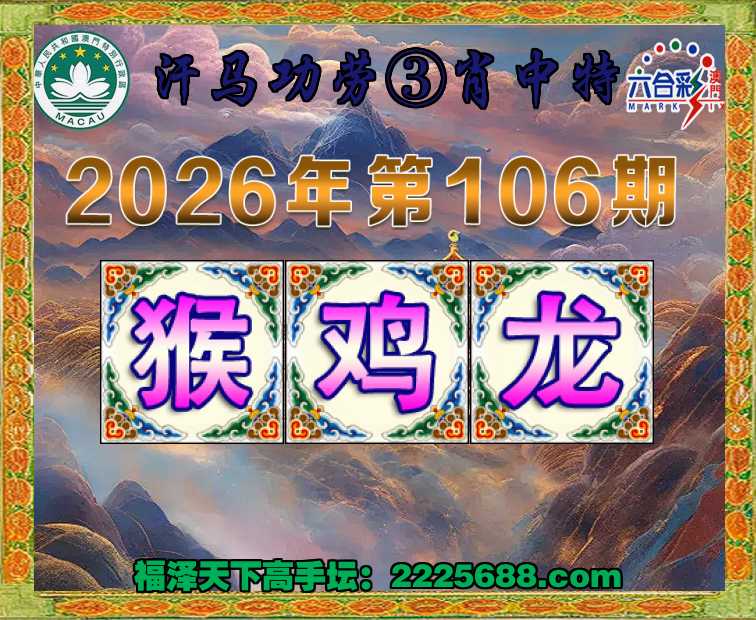 106期:〖汗马功劳〗 🍗③肖中特🍗【猴..龙】开:鸡22